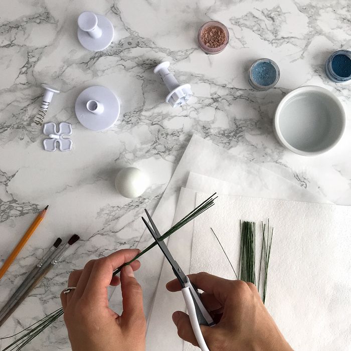Оставляем проволоку до высыхания мастики. Советуем использовать цветочную мастику, так как с ней процесс сушки протекает и намного быстрее.
