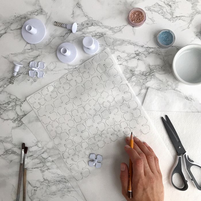 С помощью простого карандаша или пищевого фломастера переводим трафареты на вафельную бумагу и вырезаем. Конечно, форма для вырезания не самая простая, но результат, поверьте, стоит того.