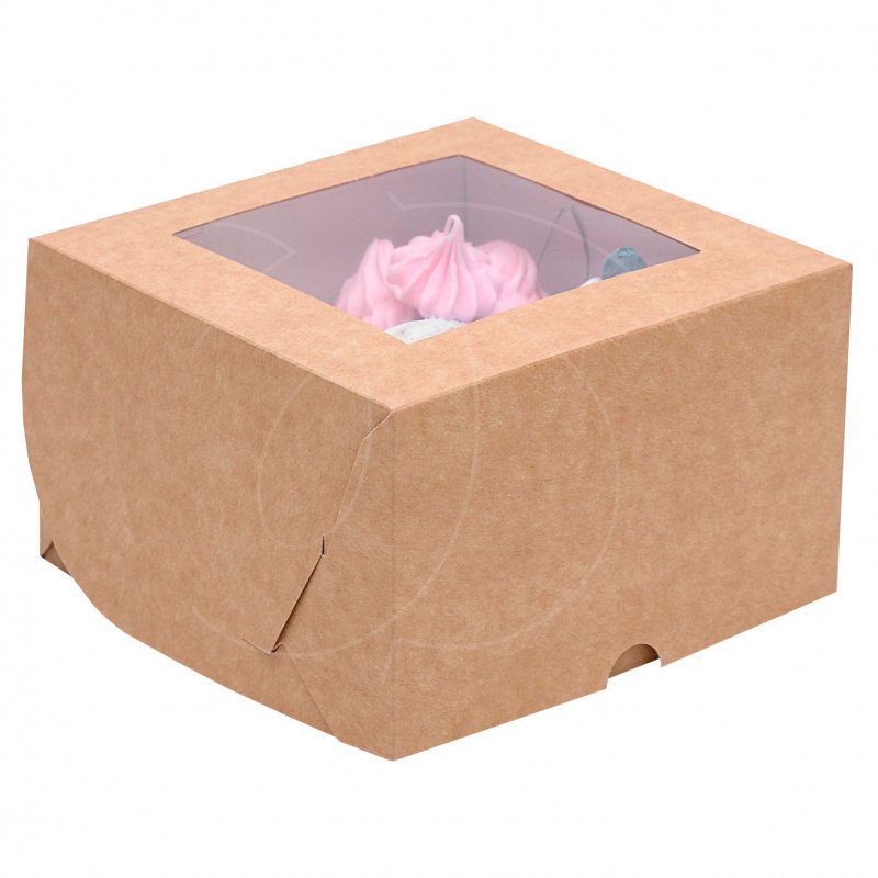 Доставка Коробка на 4 капкейка с окном крафт 16х16х10 см из магазина в вашем городе: