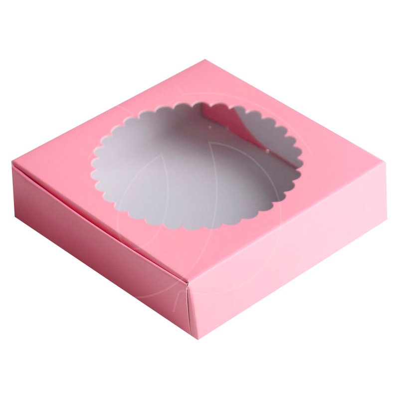 Доставка Коробка для печенья/конфет с окном розовая 11,5х11,5х3 см из магазина в вашем городе:
