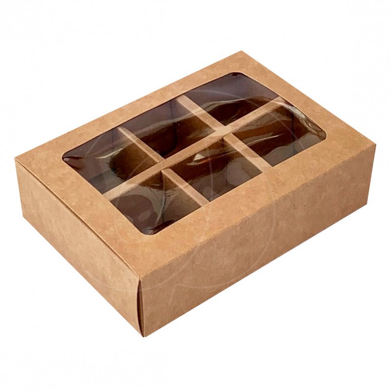 Доставка Коробка на 6 конфет с окном крафт 13,7х9,8х3,8 см из магазина в вашем городе: