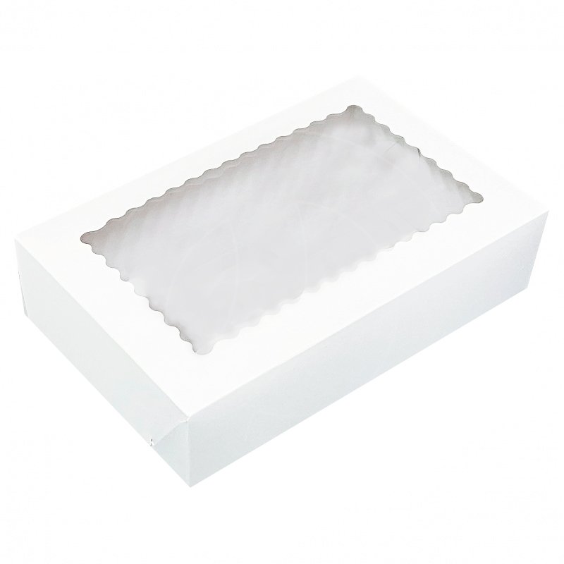 Доставка Коробка для сладостей с фигурным окном белая 24х14х5 см из магазина в вашем городе: